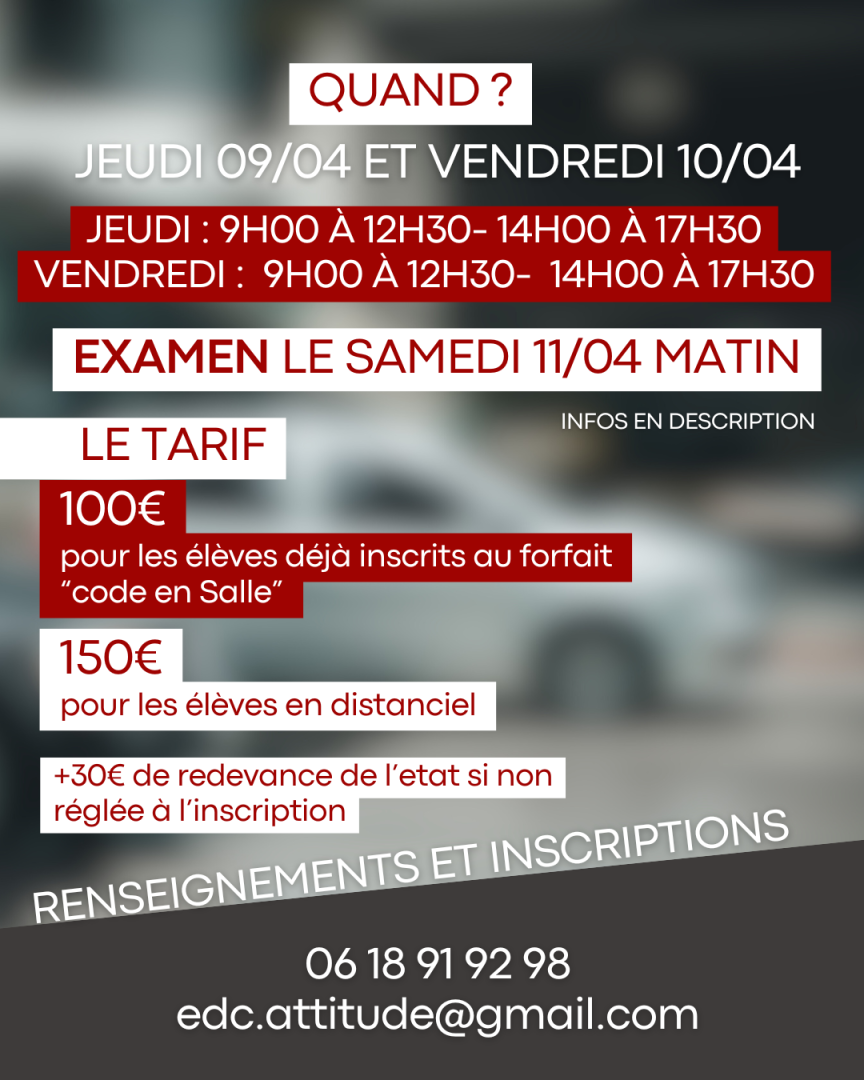 Pour plus de renseignements, contactez l' École de Conduite Attitude